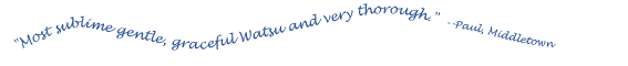 WaterDance, also known as 'Wassertanzen', like Watsu® begins with the client held above the surface of the water. And in 'Wassertanzen' the client is then given nose plugs,gradually and gently taken entirely under the water. Once freed from the bounds of head support and gravity, the clients body can be moved, stretched, and moved in literally unlimited ways. 'Wassertanzen' incorporates elements of massage, Aikido, dolphin and snake movements, rolls, somersaults, inversions, dance and much more. The effects of this work include physical release, and can combine with deep states of relaxation, meditation, bliss, visions, and pure joy. Some clinically proven benefits of Watsu® and WaterDance include: